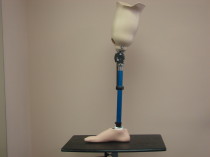 This is an example of an above the knee prosthesis with a mechanical knee joint. We fit prosthesis for everyone and give you the best componentry by your function level. We will get you up and walking by tailoring every aspect of our prosthesis to your need. From custom sockets to the best componentry we are going to work with and support you all the way.